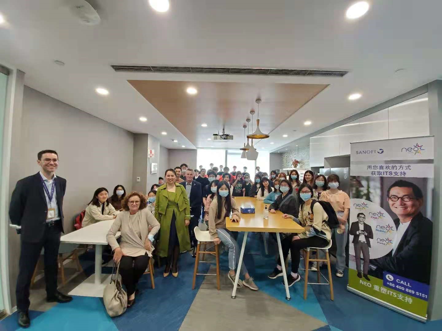 为了解营销策略在不同行业的实际运用与执行情况,培养学生理论联系实际能力,4月27日下午,在南特项目办公室的组织下,法方教学主管Dubois Dominique先生,办公室王宇老师、廖雨晨老师带领西财-南特项目2019级同学走进赛诺菲(成都),了解法国制药企业。