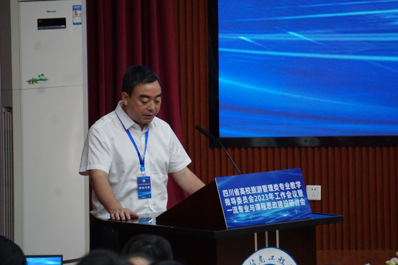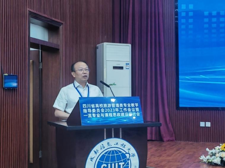 2023年6月10日,四川省高校旅游管理类专业教学指导委员会2023年工作会议暨一流专业与课程思政建设研讨会在成都召开。本次会议由成都信息工程大学承办。教育部高校旅游管理类专业教学指导委员会主任委员田卫民教授、成都信息工程大学校长何建新教授、四川省旅游学会陈加林会长、四川省文化和旅游厅科技教育处任啸处长、四川省教育厅高等教育处高波副处长、四川省高校旅游管理类教学指导委员会主任委员张梦教授,以及全体教指委委员、部分高校专业带头人出席了会议。会议由教指委秘书长、西南财经大学李文勇教授主持。
