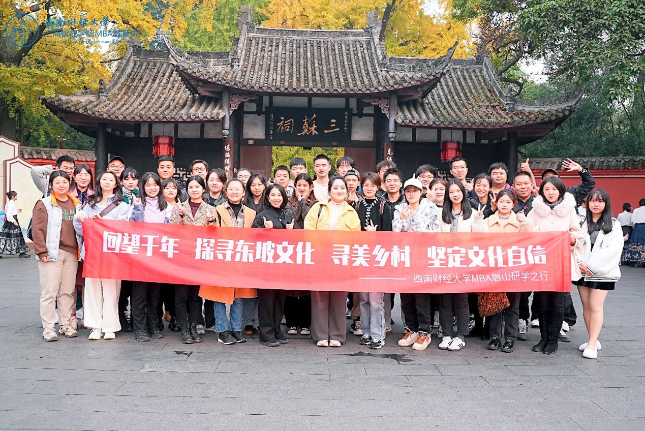 为了更好地弘扬中华优秀传统文化,进一步坚定文化自信,11月25日,工商管理学院MBA教育中心组织2023级MBA师生赴四川省眉山市开展“回望千年探寻东坡文化,寻美乡村坚定文化自信”主题研学,参观了三苏文化发源地和传承地三苏祠和眉州文化村。