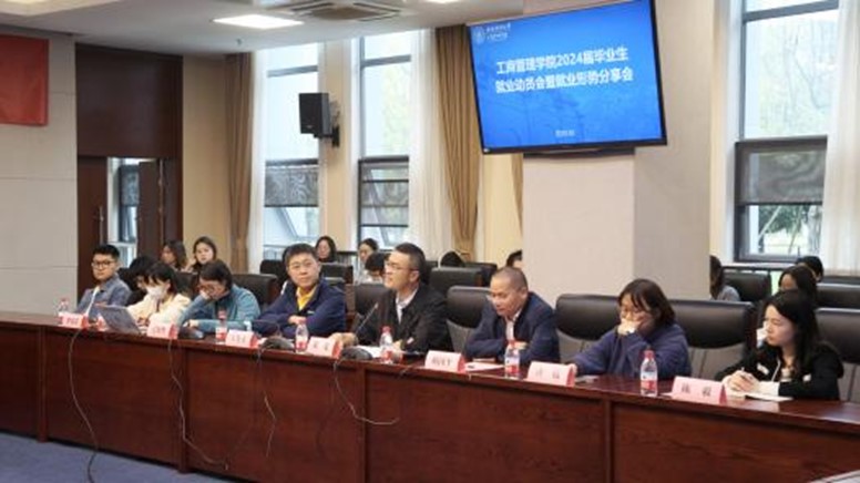 为进一步做好2024届毕业生就业工作,根据学校安排,工商管理学院于10月12日召开2024届毕业生就业动员会暨就业形势分享会。工商管理学院院党委书记郑茂,党委副书记、纪委书记胡国平,党委副书记王昱夫,学生职业规划与就业指导中心吴怡然,全体毕业班辅导员及学院2024届毕业生参会。