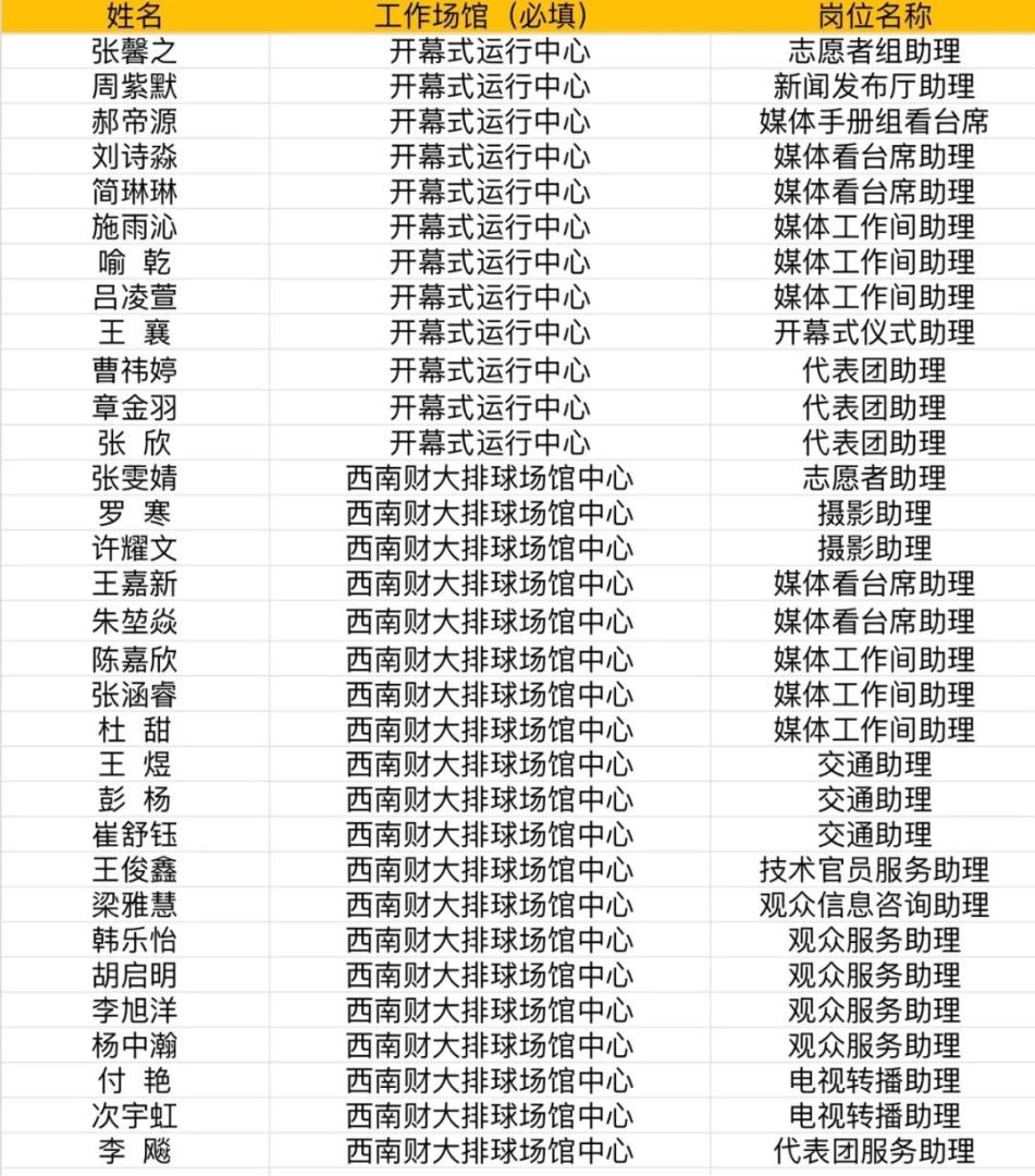 工商管理学院大运会赛会志愿者名单