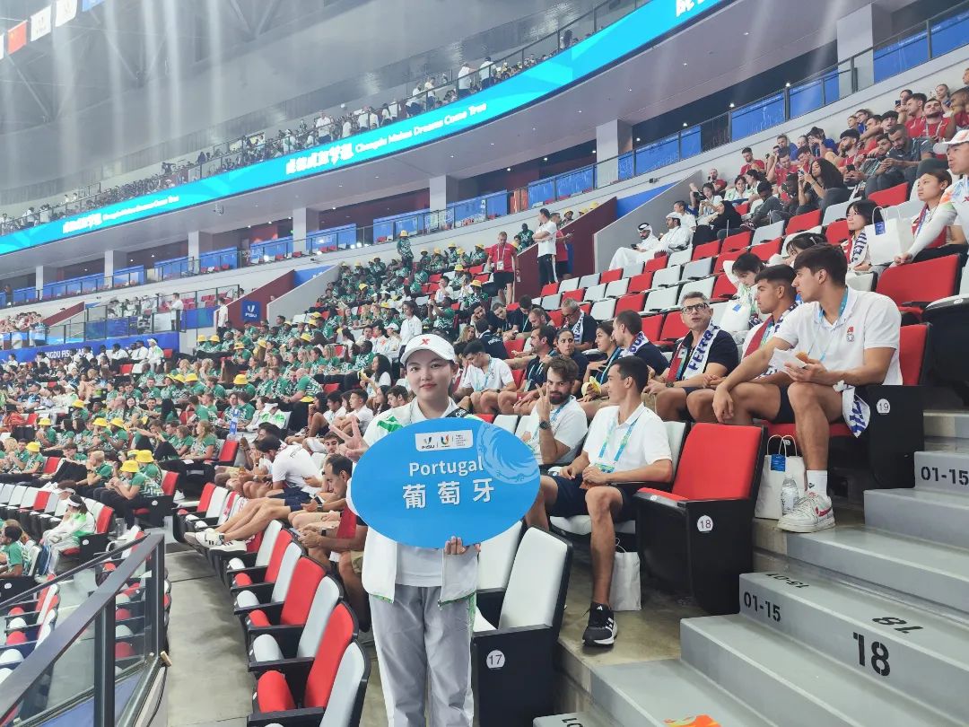 作为工商管理学院的一名研究生,我有幸参与了大运会开幕式工作并担任葡萄牙代表团助理岗位,负责运动员们在综合体操馆的候场服务工作,以及引导他们出发前往主场馆参加入场仪式。从线上课程到线下培训,我能感受到各层级工作人员对待开幕式工作的细心、耐心和用心,大家都为开幕式付出了很多努力。在这其中,我更要感谢我的导师,从最开始的选拔到集训再到工作圆满完成,李老师都给予了我莫大的鼓励和关怀!
