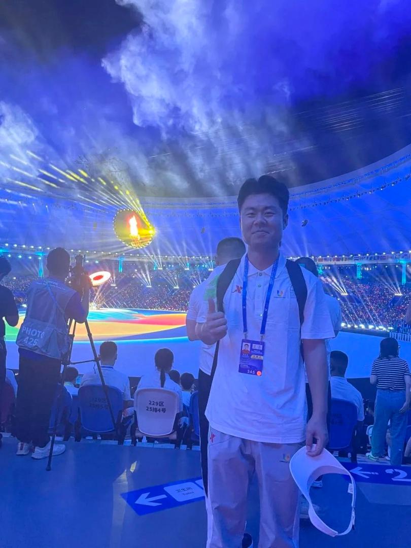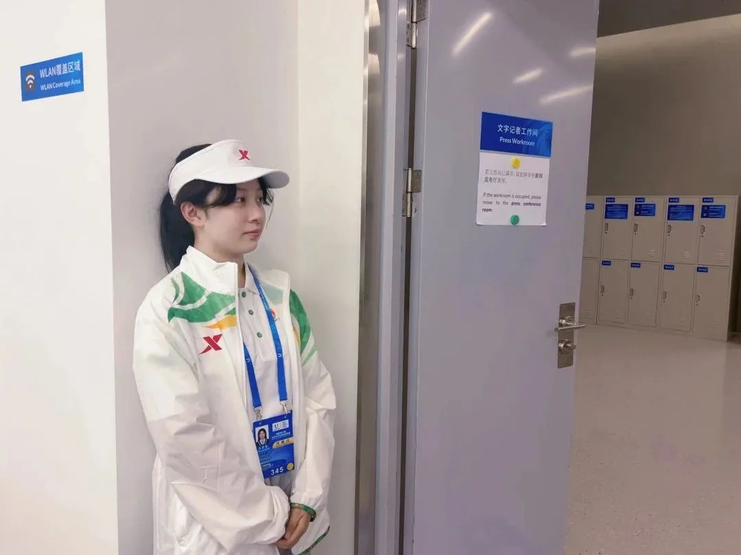 本次开幕式我在媒体手册组主要负责看台茶歇间的工作。工作中需要及时管控茶歇间物资,如管理冷风机、补充水源等,以帮助媒体工作者在这里更好地得到休息和能量补充。媒体进场后人流量变大,我和他们进行了有效的交流并及时提供帮助,在和同伴的合作中圆满完成后勤工作。这不仅提升了我的应对能力,更让我有满满的成就感。