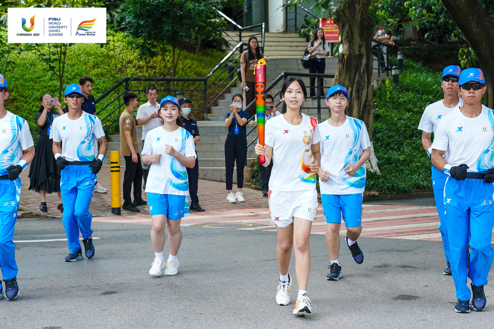 西南财经大学2021级工商管理(双语实验班)专业学生,来自中国澳门的李嘉媛作为深圳站年龄最小的火炬手,传递大运火炬。