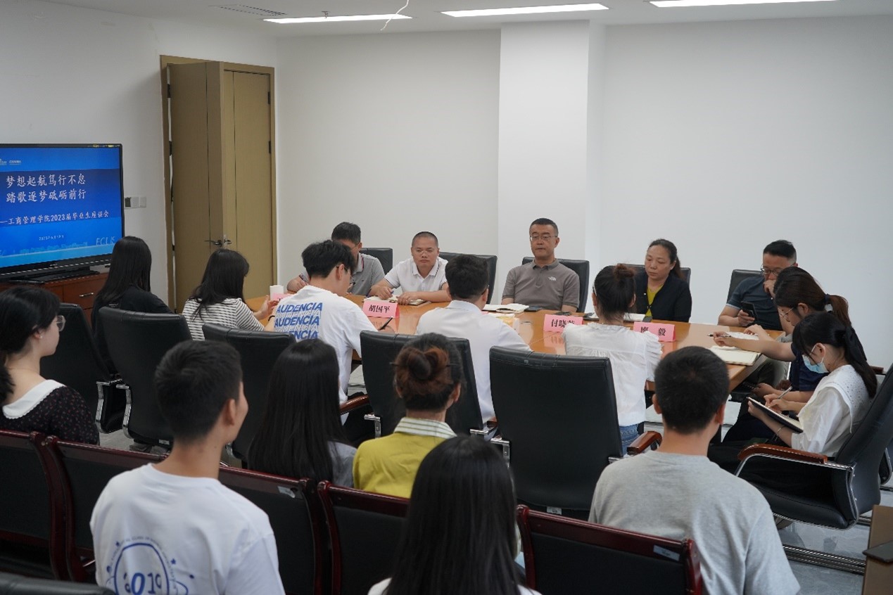 6月19日,学院在诚正楼1241会议室召开了“梦想起航笃行不怠 踏歌逐梦砥砺前行”2023届毕业生座谈会。学院党委书记郑茂,党委副书记胡国平、王昱夫,副院长付晓蓉、廖毅,毕业班辅导员陈楠、陈毅、罗谟诺及学院辅导员、行政教师代表和毕业生代表参会。