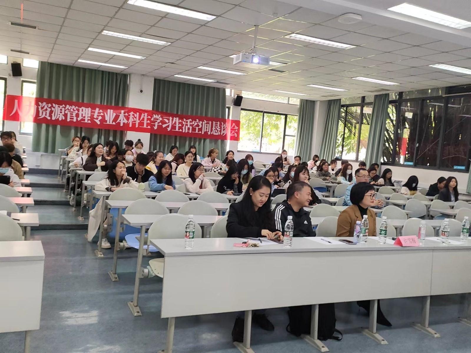 为深入了解学生心声,促进师生间交流,3月21日下午,人力资源管理系在经世楼E102成功举办本科生学习生活空间恳谈会,上海外服(四川)人力资源服务有限公司营销总监许雪梅,人力资源管理研究所所长杨付,系主任徐姗,系副主任余宇,专业课教师李晨晨和本科各年级同学近百人参会,会议由李晨晨主持。