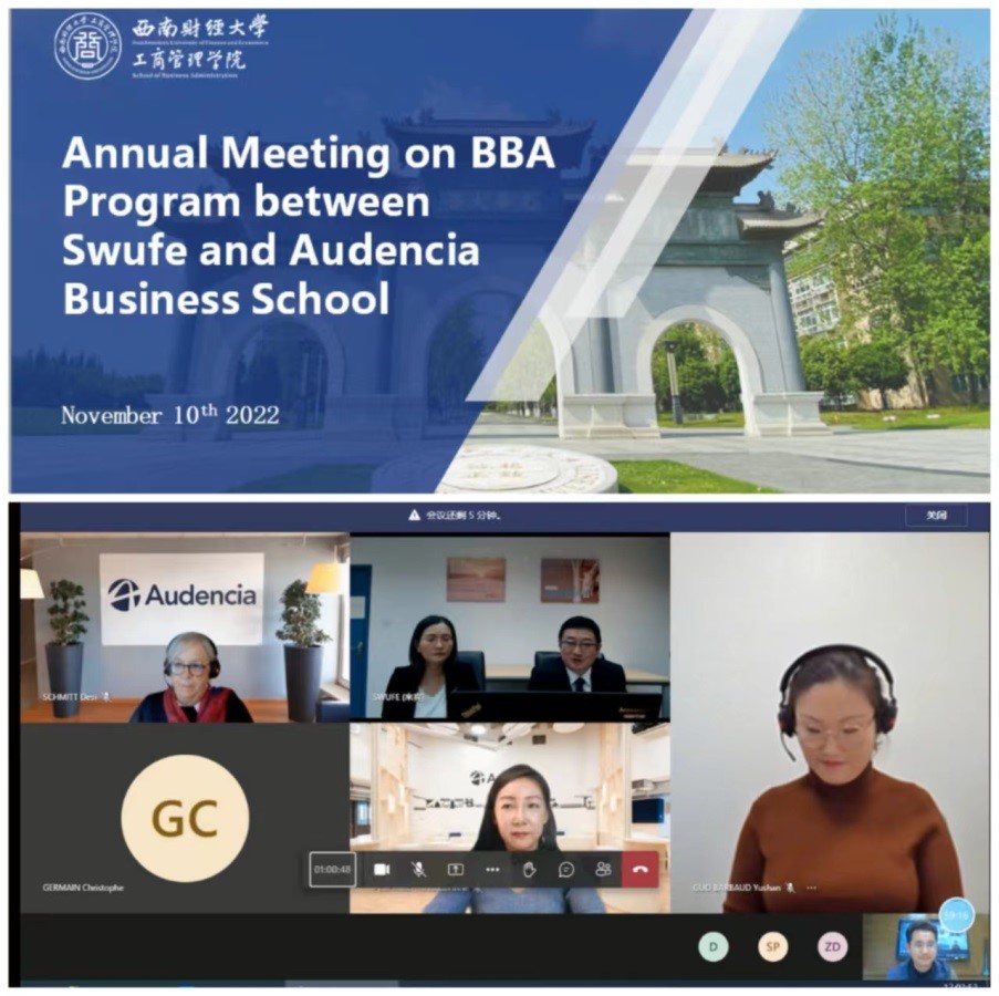 12月6日,西南财经大学工商管理学院同法国南特高等商学院举行了第三届中法教务线上交流会。本次会议是根据今年11月10日西南财经大学工商管理学院院长王珏教授同法国南特高等商学院院长Christophe Germain教授在西财-南特项目年度会议中就项目学生培养成果、教学质量评教、学生活动、项目改进措施等进行深入交流的基础上,结合对未来深化合作和项目的高质量发展意见,召开的此次交流会。