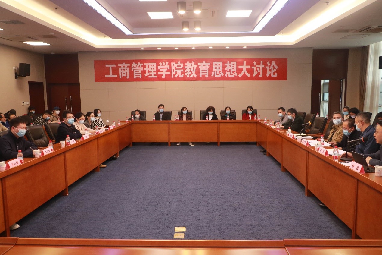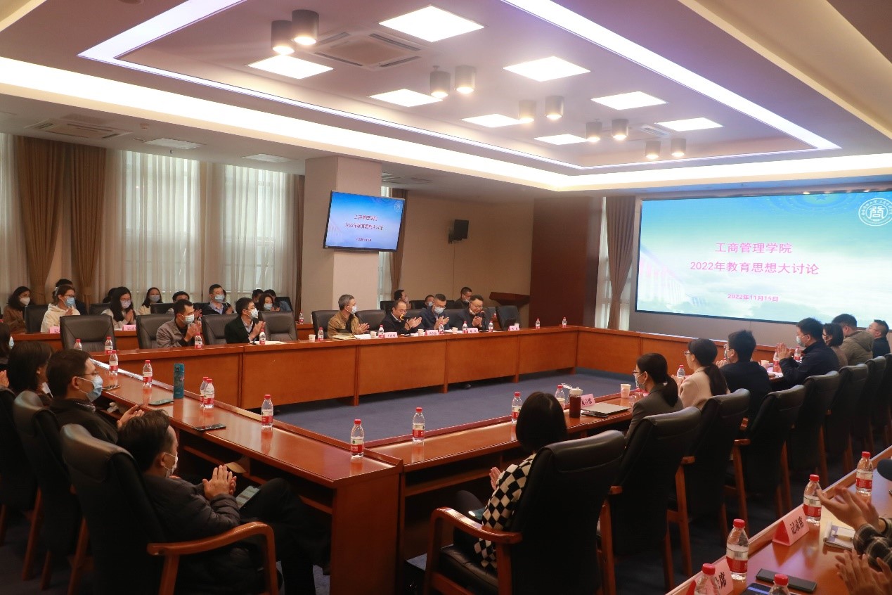 11月15日下午,工商管理学院在弘远楼109会议室顺利召开了以“聚焦思政课程与课程思政教学改革与发展实践,深入推进党的二十大精神进课堂进教材进头脑”为主题的2022年教育思想大讨论。学校教务处处长汤火箭、教师教学发展中心主任王远均,学院党委书记郑茂以及专业课教师参加了本次会议。会议由副院长廖毅主持。