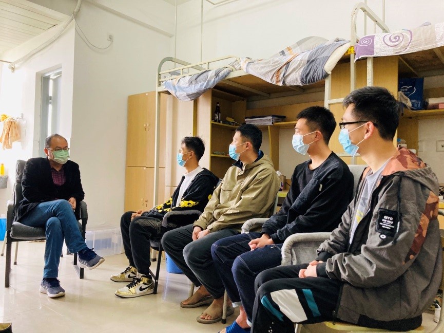 走访过程中,王石与同学们进行亲切交谈,关心了解大家在学习、生活、实习等方面的情况及存在的困难问题。他教导同学们,当前我国处在疫情防控的重点攻坚时期,全院师生要坚决响应国家“动态清零”的总方针,万众一心,力保师生平安。虽然疫情防控期间师生们的出行在客观上存在一定程度的不便,但在全国抗疫一盘棋的大是大非面前,希望同学们能够明白孰轻孰重,能够真正理解并遵守好学校疫情防控各项政策。