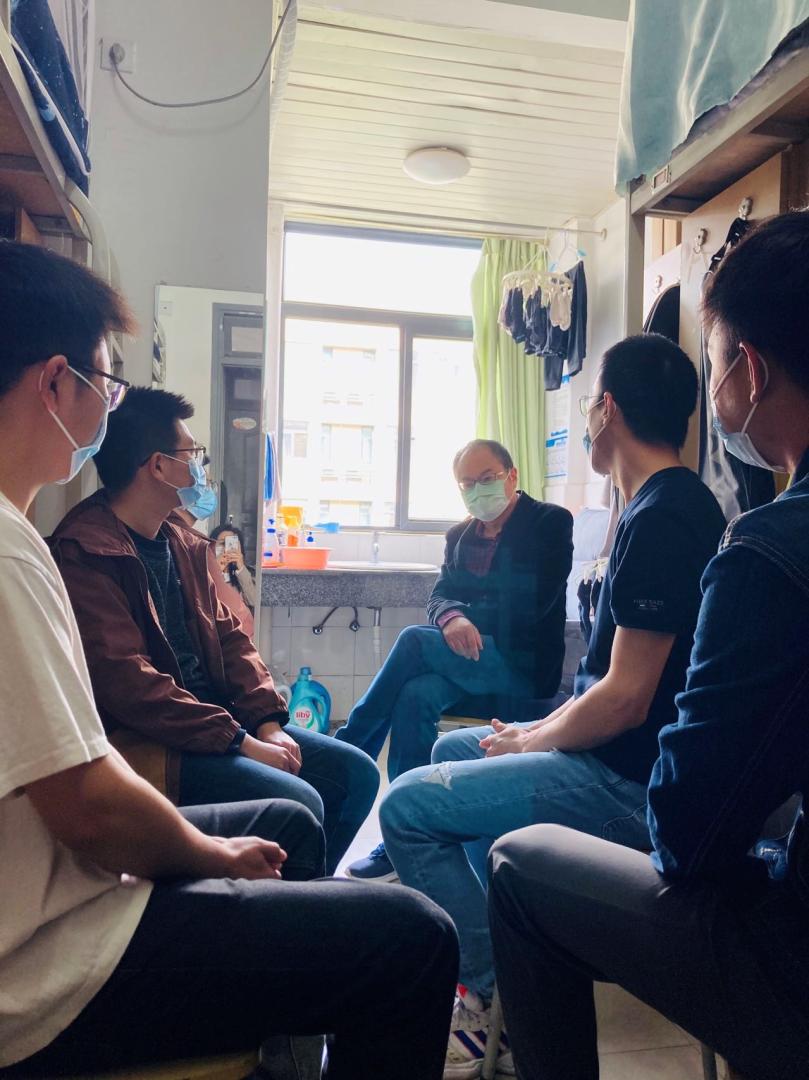 为深入贯彻落实学校疫情防控工作要求,了解疫情期间学生学习生活状况及思想动态,4月5日上午,学院党委书记王石带领辅导员们深入学生寝室,开展走访活动。